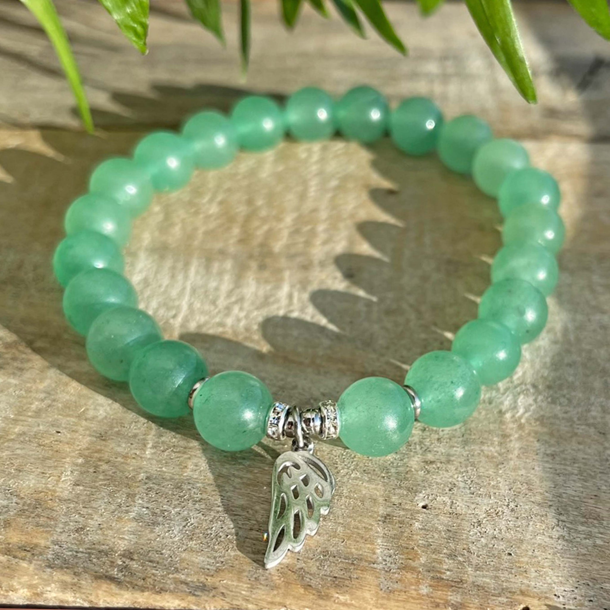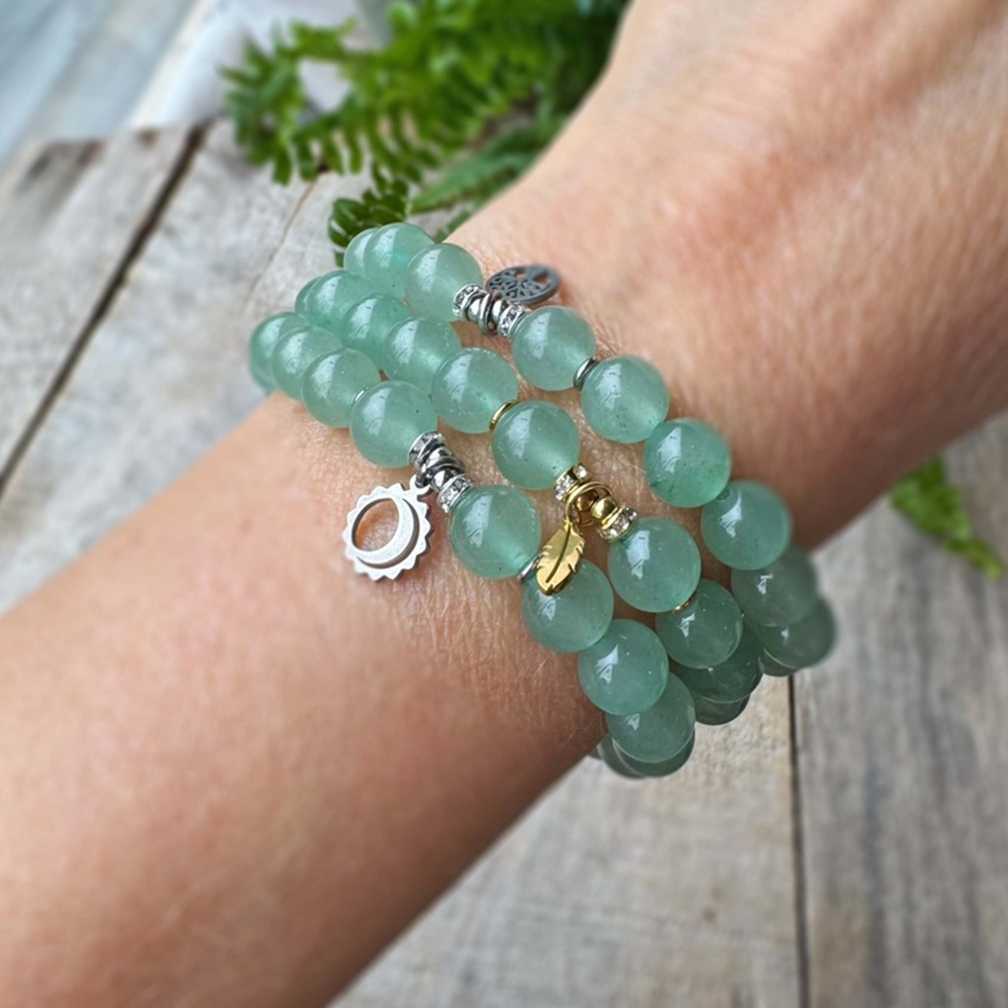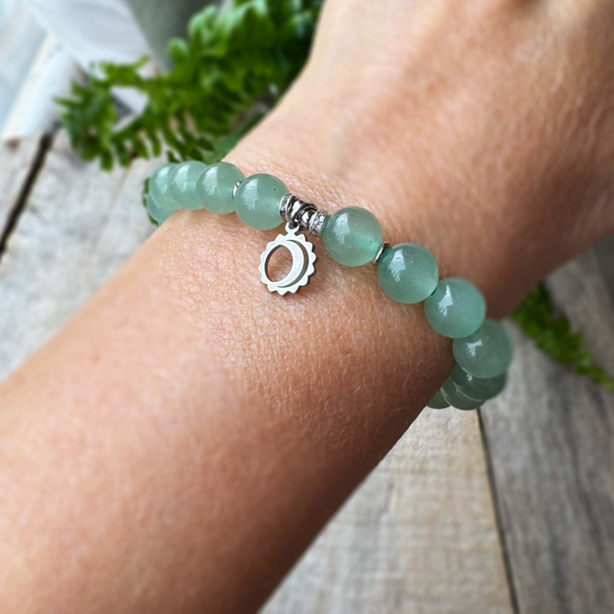 Kaunis Vihreä Aventuriini rannekoru laadukkaalla kirurginteräs (hopea/18k kullattu) charmilla.