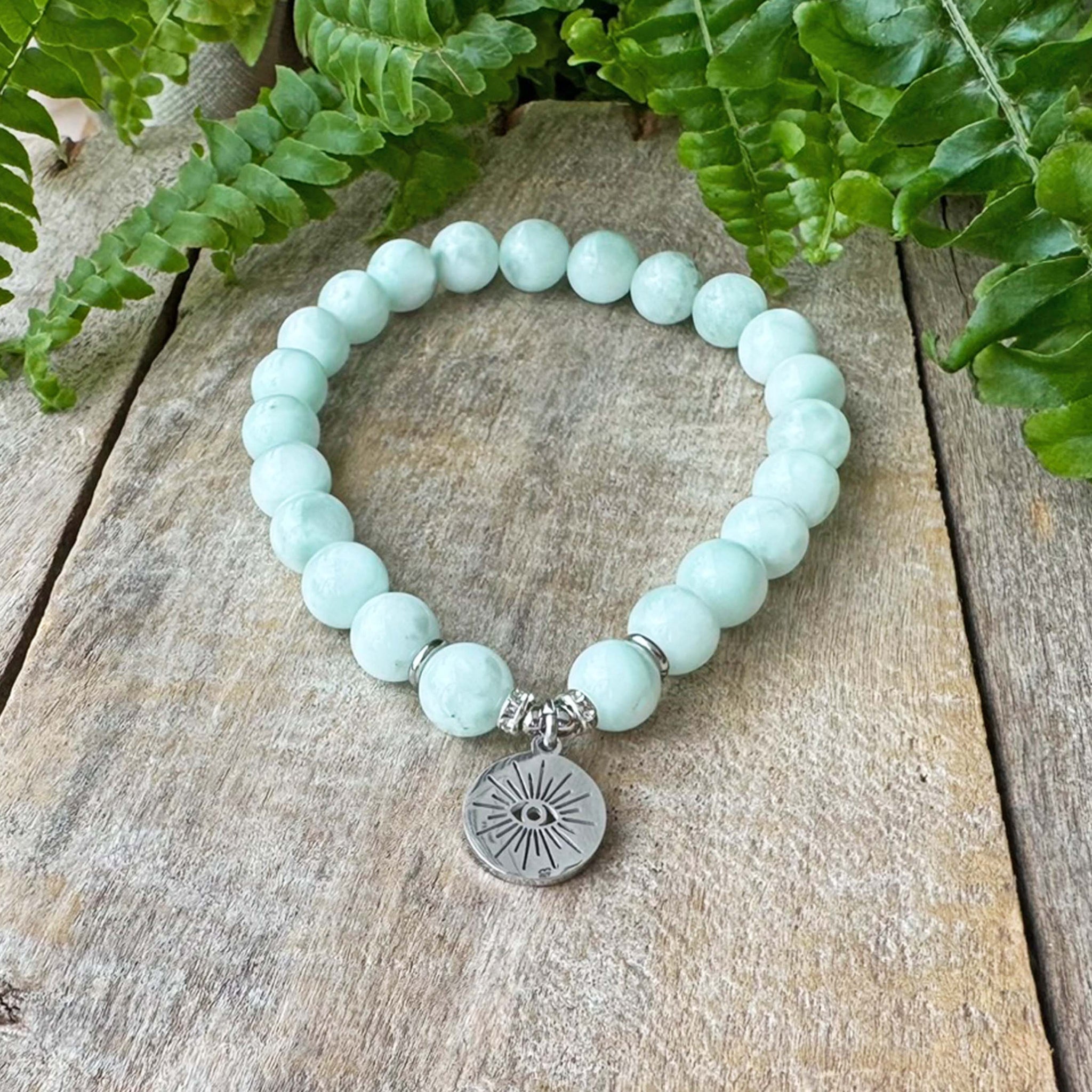 Kaunis mintunvihreä Garnieriitti rannekoru laadukkaalla kirurginteräs (hopea/18k kullattu) charmilla.