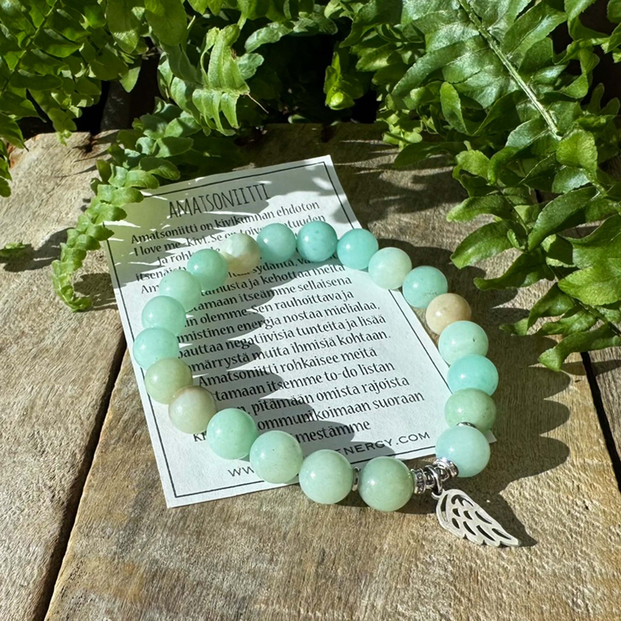 ➳ Amatsoniitti on kivikunnan ehdoton I love me -kivi. Se on toivon, totuuden ja rohkeuden kivi, joka auttaa itsenäistymään ja löytämään itsemme. Amatsoniitti hoitaa sydäntä, vahvistaa itseluottamusta ja kehottaa meitä rakastamaan itseämme sellaisena kuin olemme. Sen rauhoittava ja optimistinen energia nostaa mielialaa, vapauttaa negatiivisia tunteita ja lisää ymmärrystä muita ihmisiä kohtaan. Amatsoniitti rohkaisee meitä pistämään itsemme to-do listan kärkeen, pitämään omista rajoista kiinni ja kommunikoimaan suoraan sydämestämme