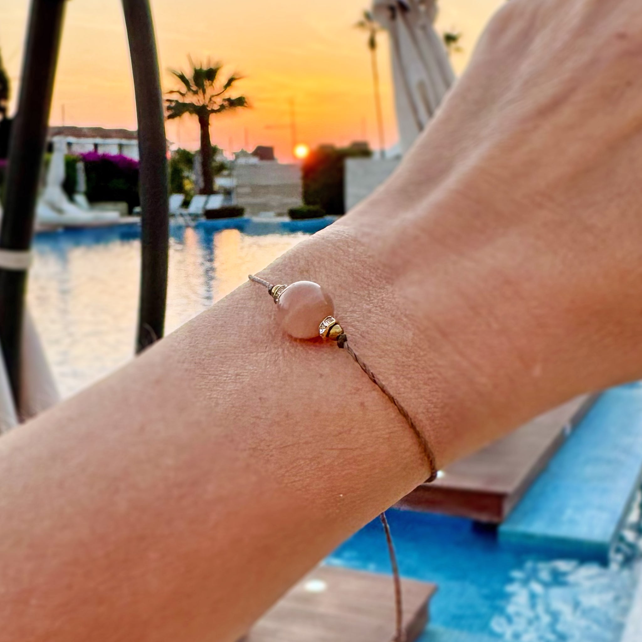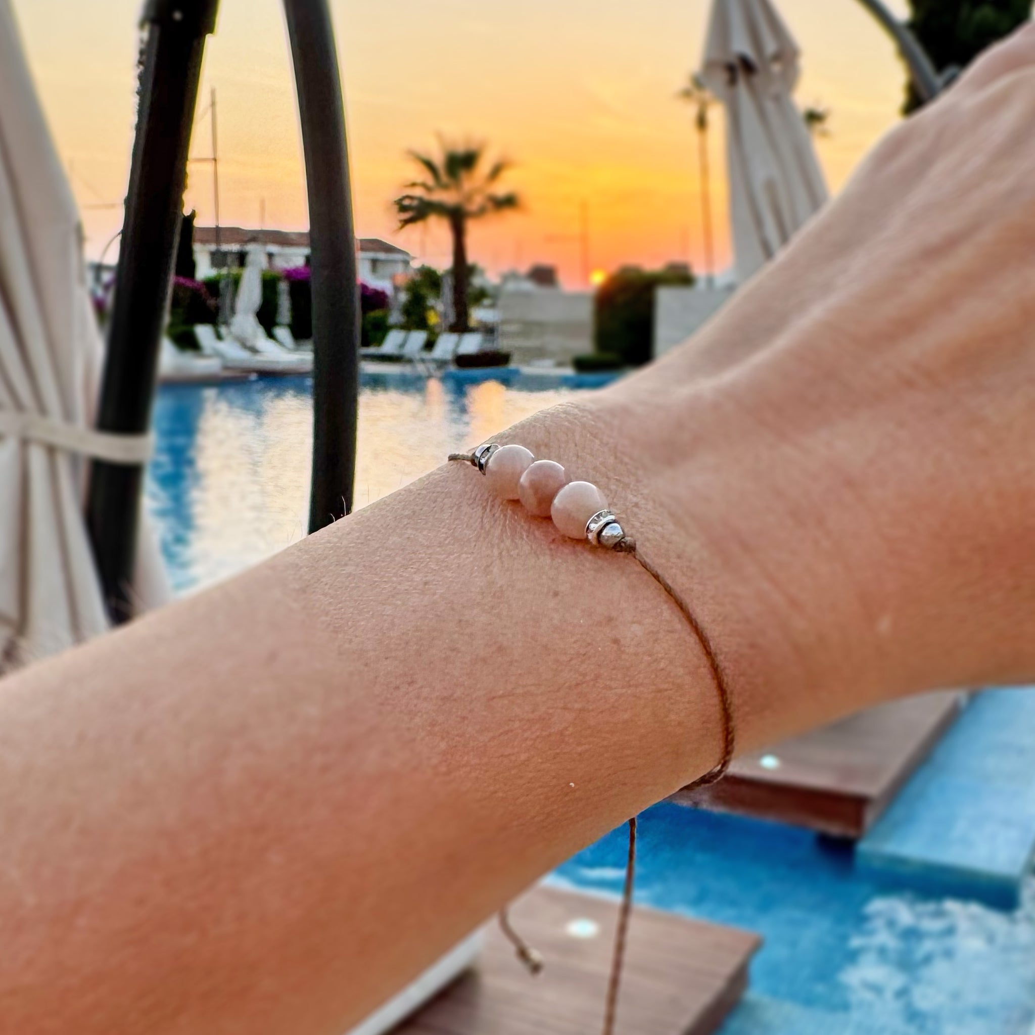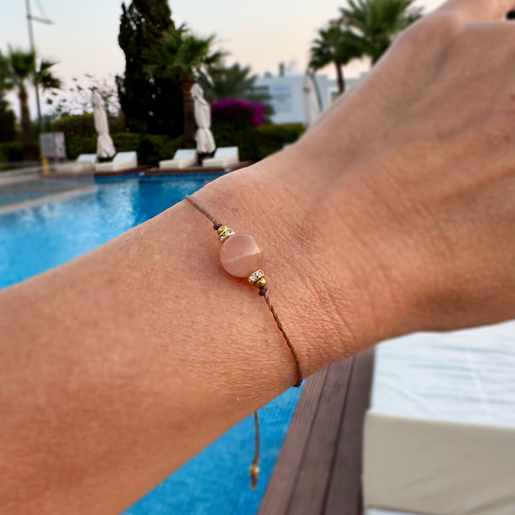 Kaunis minimalistinen Aurinkokivi nyörirannekoru pienillä bling -välihelmillä. Säädettävän koon ansiosta sopii jokaiseen ranteeseen. Ihana myös lapsille.