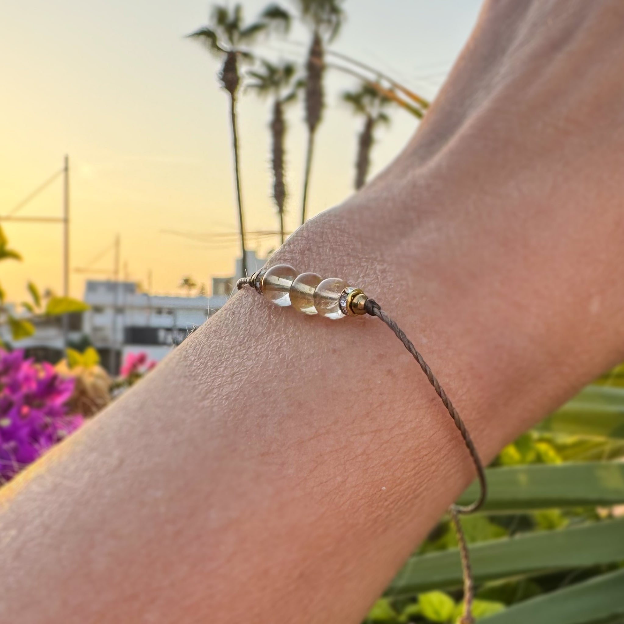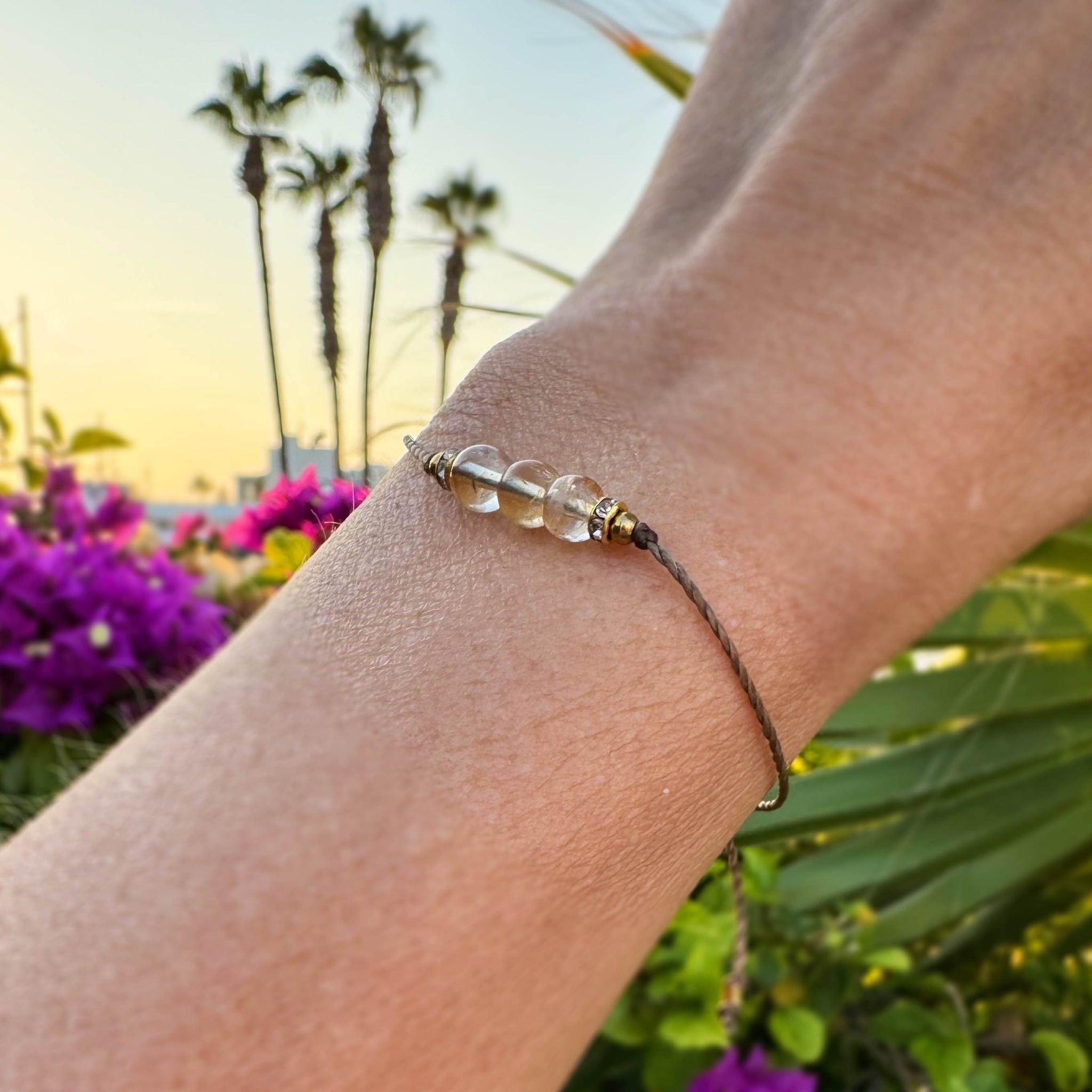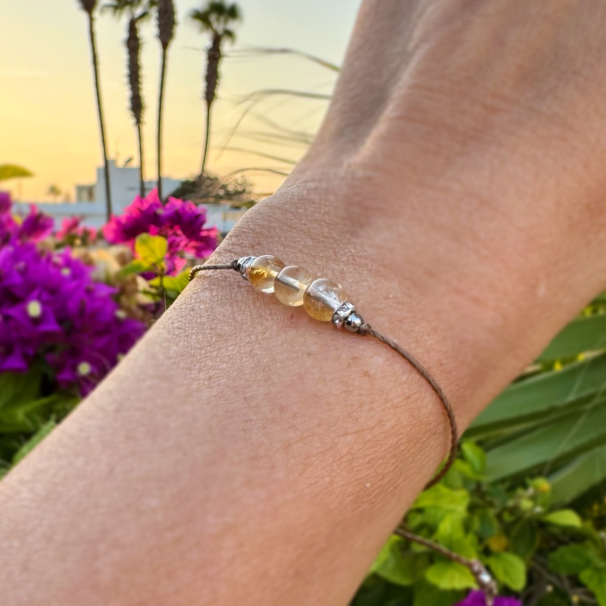 Kaunis minimalistinen Sitriini nyörirannekoru pienillä bling -välihelmillä. Säädettävän koon ansiosta sopii jokaiseen ranteeseen. Ihana myös lapsille.