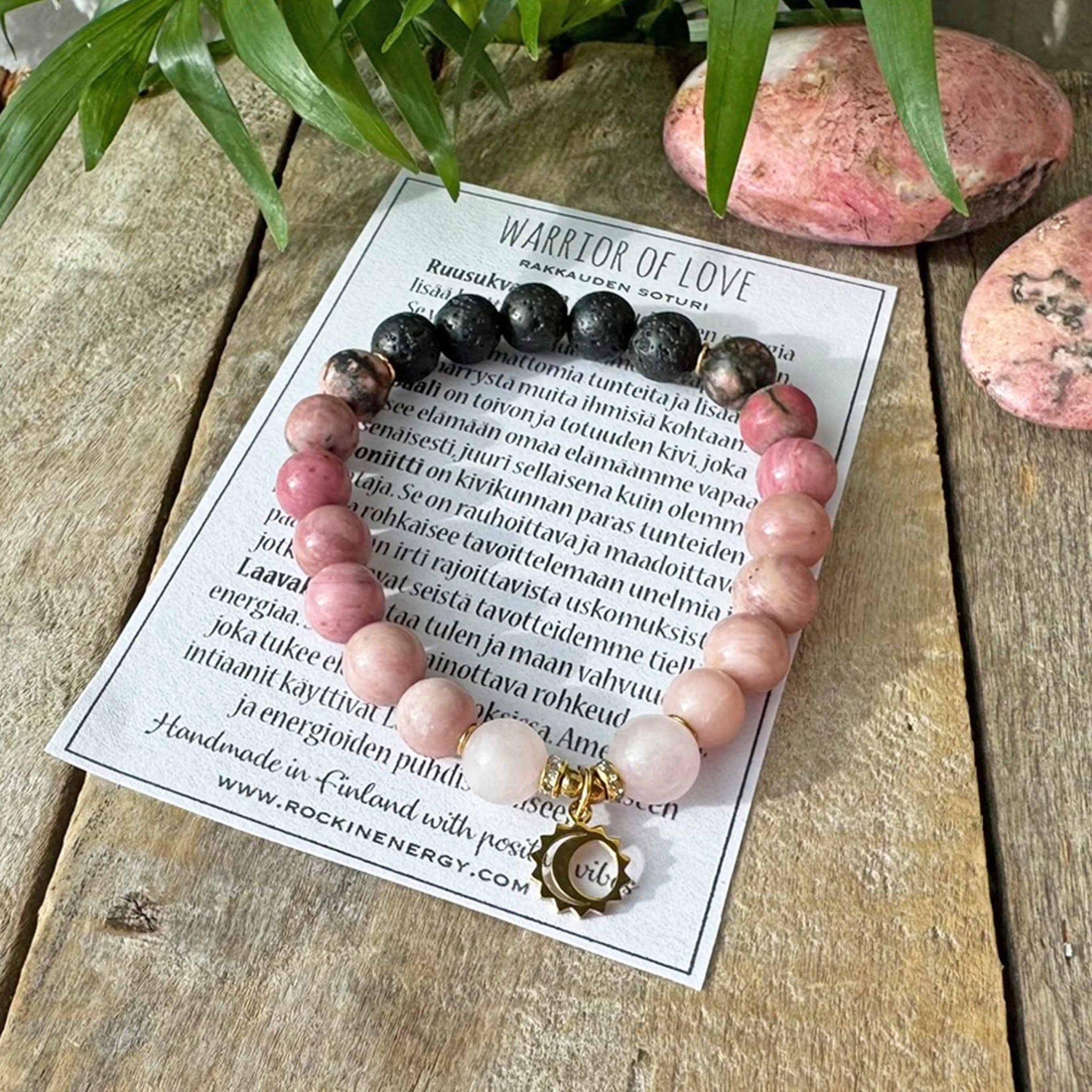 • Rannekorun mukana saat kivienergiakortin, korun aktivointiohjeet ja kankaisen korupussin.