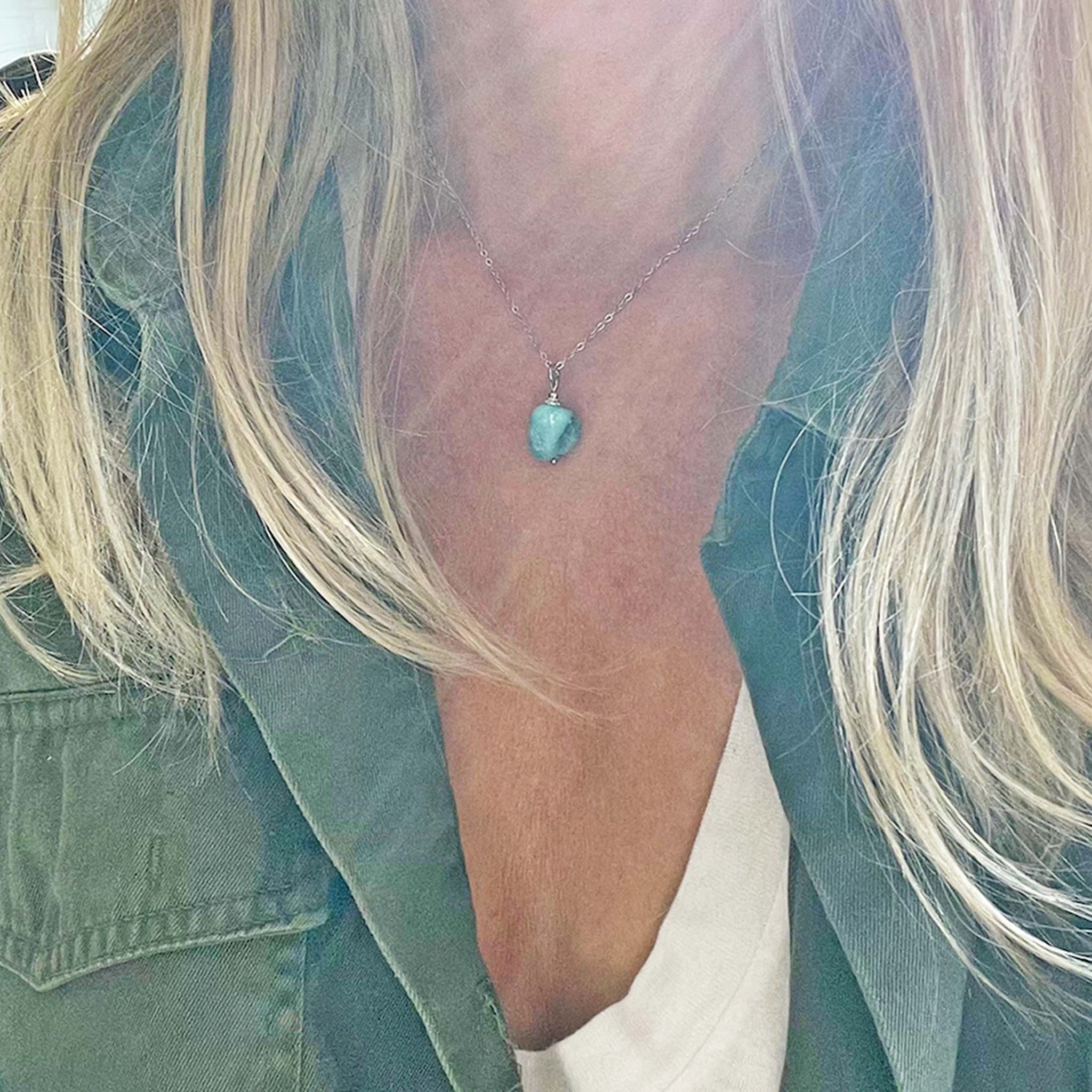 Kaunis uniikki Larimar kaulakoru pienellä bling yksityiskohdalla.